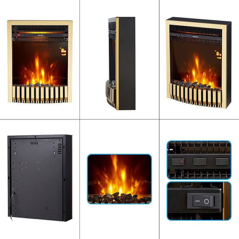Beépített elektromos kandalló Gala gold, Art Flame, 577x447x161 mm, 2000 W, Termosztát, 5 lángfényességi szint, Időzítő