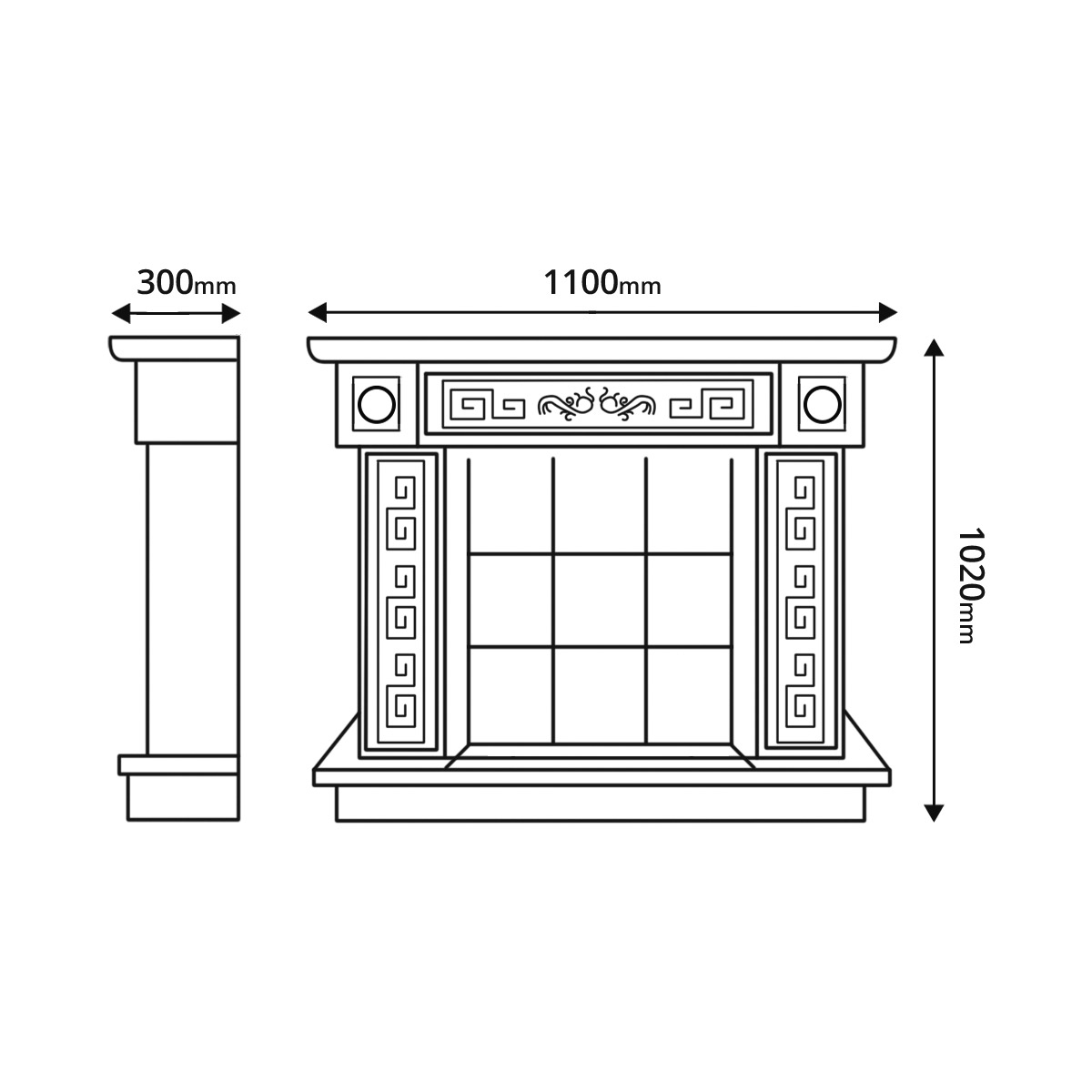 A Versailles Gold Plus kandallókészlet igényes, modern stílusban készült. Maga a kandallókészlet klasszikus fehér színben készül, az oszlopokon elegáns, finom arany patina mintákkal. A kandallókészlet közepén állvány található a többi dekorációs elem számára. Van egy fényvisszaverő felület is, négyzet alakú csempe formájában. A burkolat tökéletesen kiegészíti szobája kialakítását, és más dekorációs elemekkel is kombinálható. Forgácslapból és MDF anyagokból készült.