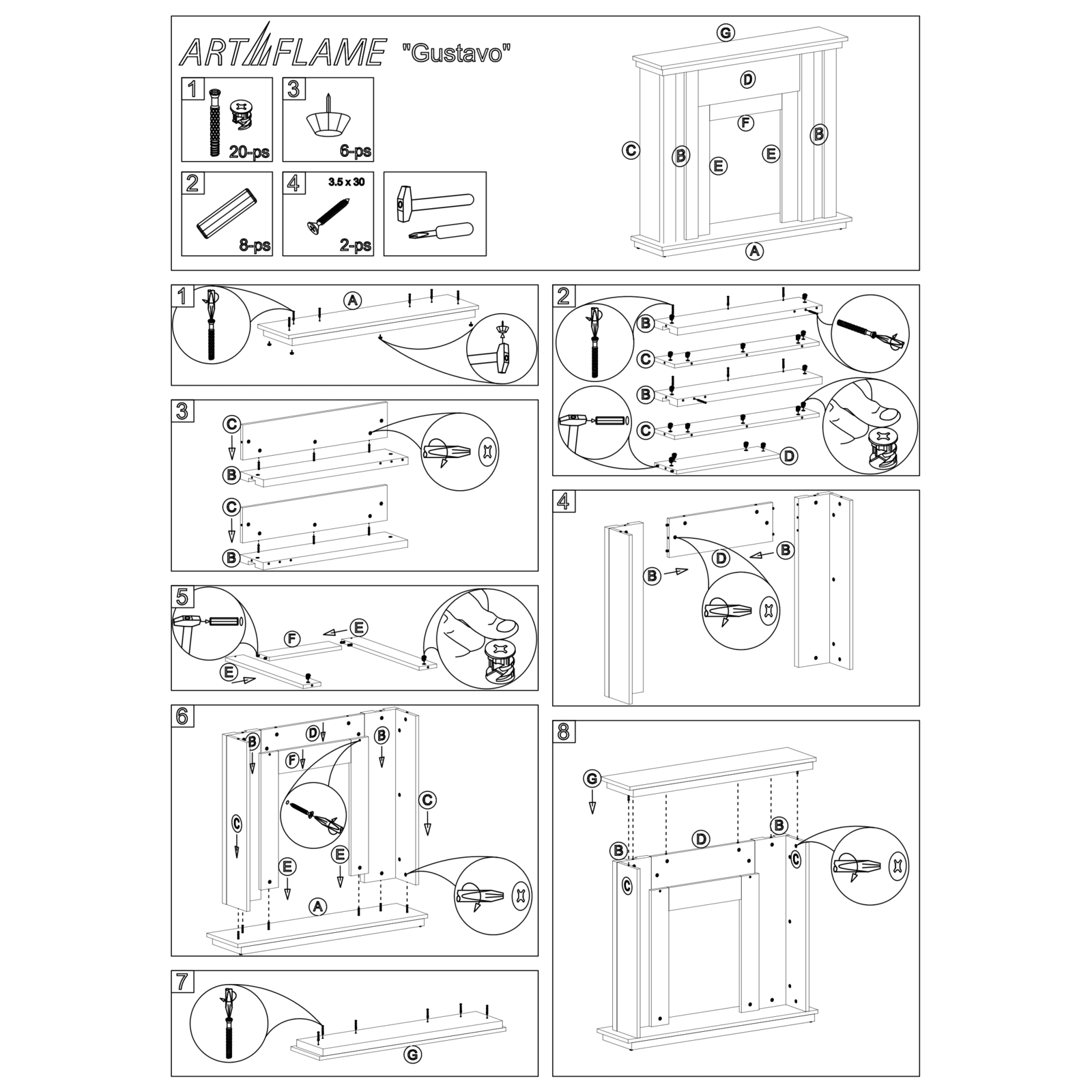 Elektromos kandalló Gustavo & Galileo gold, Art Flame, 950x1100x270 mm, 2000 W, Termosztát, 5 lángfényességi szint, Időzítő