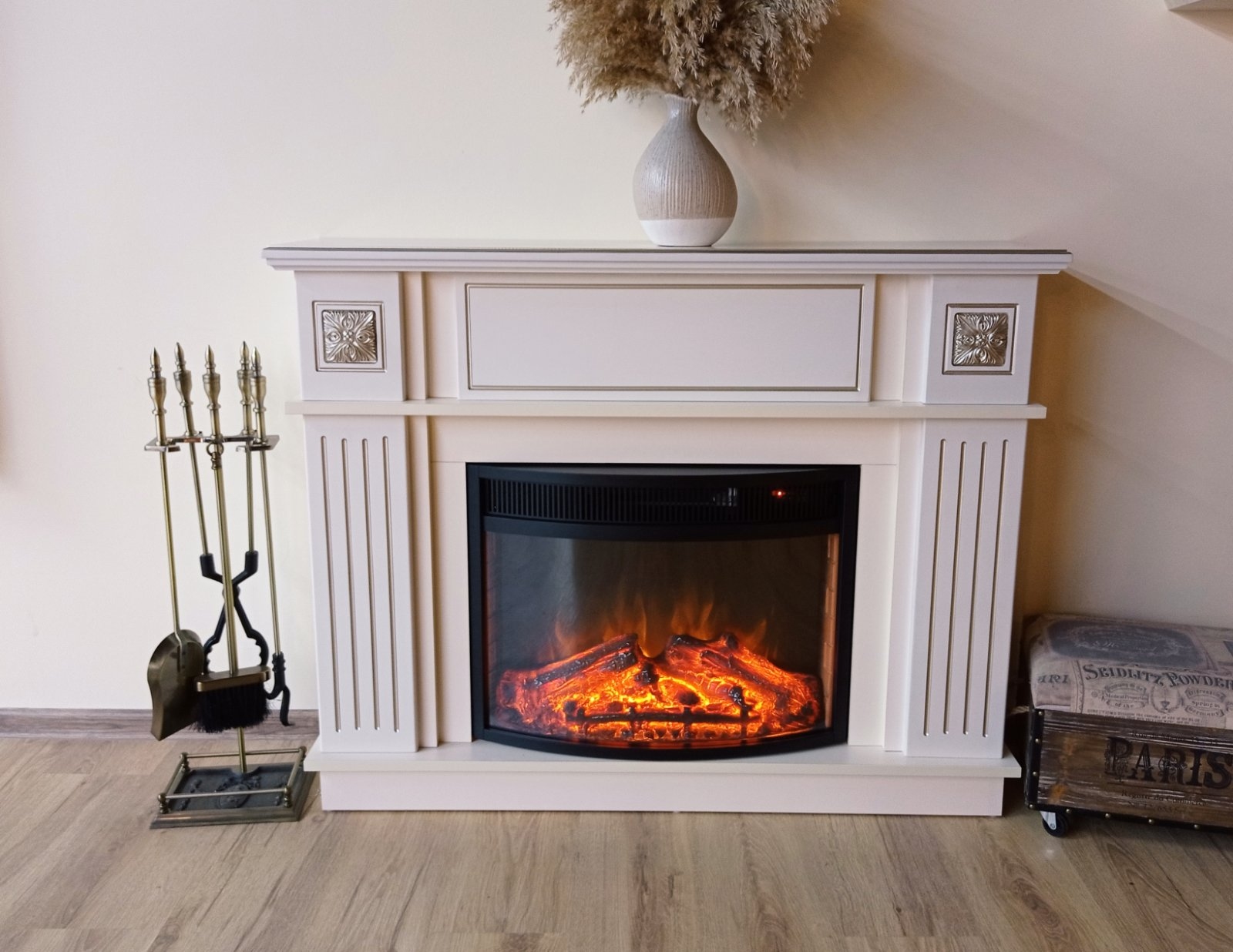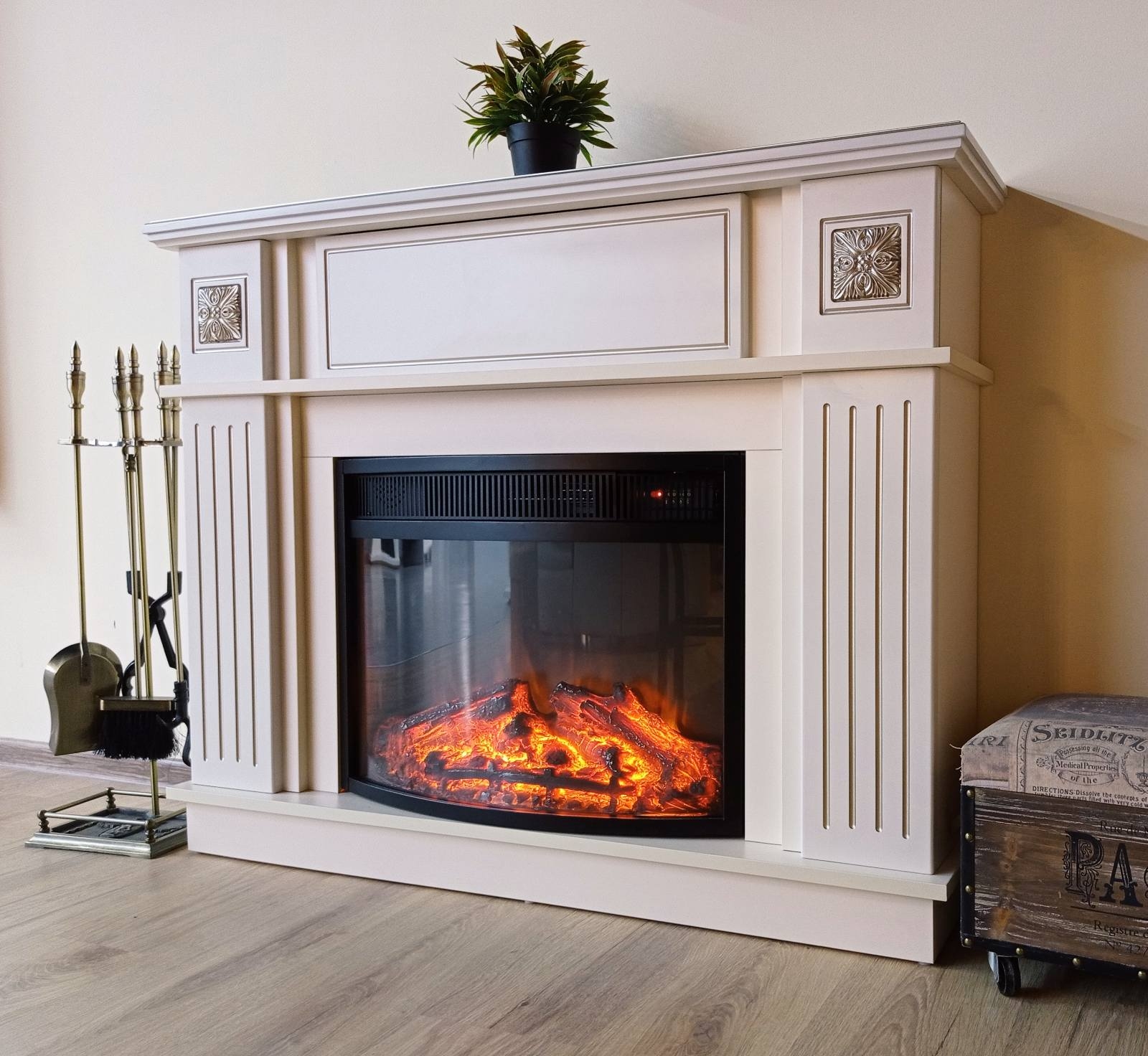 A Miracle & Ararat elektromos kandalló valósághű, minimális villamosenergia-fogyasztással. Jázmin színben, cappuccino patinával, elegáns oszlopokkal ellátott keretekkel. Az Ararat elektromos tűzhley kiváló minőségű láng utánzása csodálatos kényelemérzetet kelt. Ennek a modellnek a funkcionalitása lehetővé teszi, hogy a lángot a fűtési módtól elkülönítve használja.