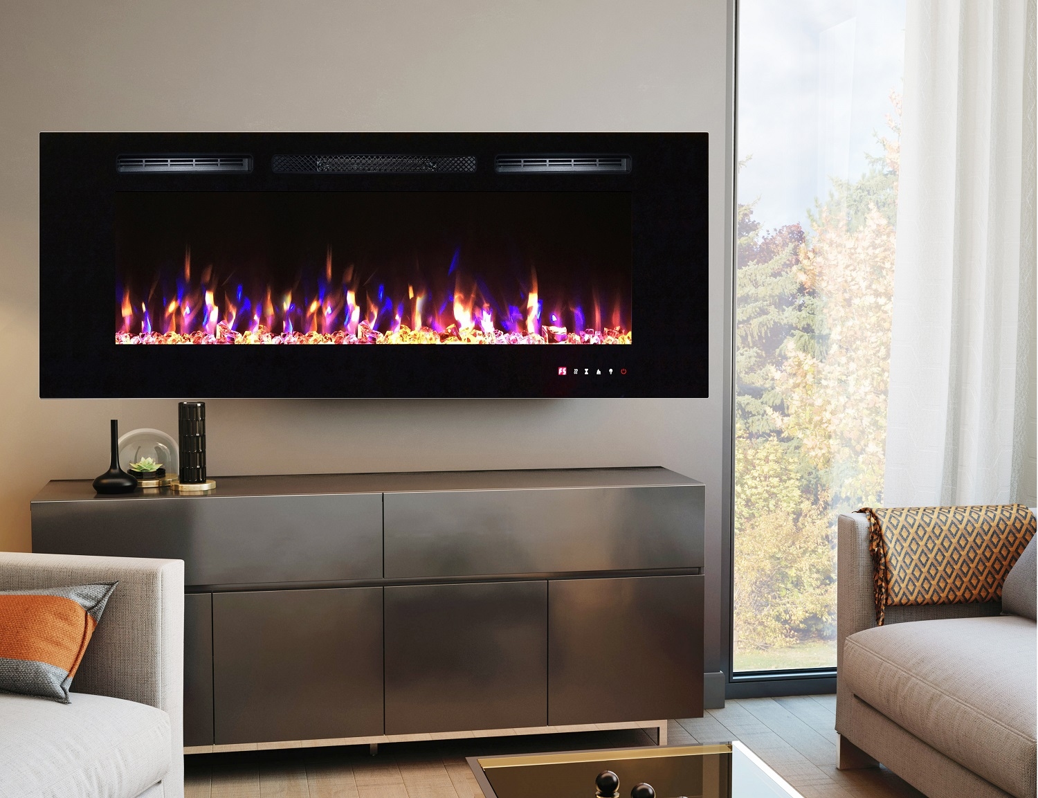 Modern Heracles elektromos kandalló, valódi lánghatás, amely könnyen díszíti a nappalit. Ez a modell a falra helyezhető, vagy az ügyfél kérésére beágyazható. A kandalló funkciója kétféleképpen működik: fűtés és dekoratív mód. A hőt egy csendes konvektor segítségével osztják szét a szobában. Ez a modell meglehetősen gazdaságos, maximális teljesítménye csak 1,5 KW. Egy másik gyönyörű lehetőség a LED-es háttérvilágítás. A Heracles felszerelése a hideg télen felmelegíti és romantikus hangulatot biztosít a nyári estéken.